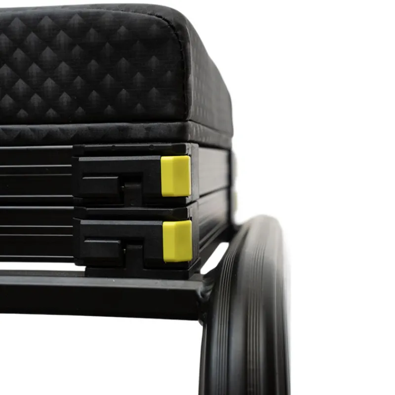 La station TS3 SEATBOX est le modèle le plus léger de la gamme D36. Son poids de 14.8 Kg en fait un modèle particulièrement léger, rapporté à ses dimensions généreuses. Elle dispose de 6 pieds D36 (4 télescopiques à l’avant, et 2 fixes à l’arrière) qui offrent une excellente stabilité et qui permettent une installation sur tous les types de terrains. Elle est équipée d’origine d’un casier de 30 mm idéal pour le stockage de vos plioirs, et d’un tiroir latéral compartimenté de 30mm sous l’assise parfait pour accueillir vos plombs, hameçons, sondes ou encore vos outillages tels que des ciseaux ou votre pince à plombs.