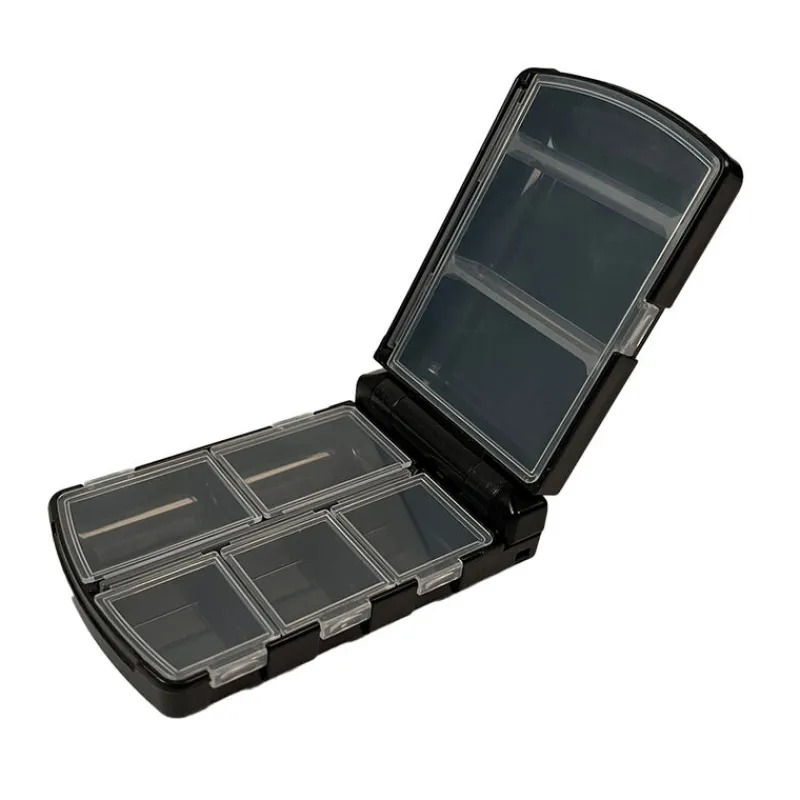 L’étui Flip Case VS-315DD de Versus est le moyen idéal pour transporter de petits articles de pêche, des poids et des hameçons sur votre lac ou votre rivière. Cet étui en plastique se plie pour se glisser facilement dans votre poche et possède 6 compartiments individuels pour garder vos hameçons et poids séparés. Cet étui constitue également une excellente première boîte à outils pour les enfants !