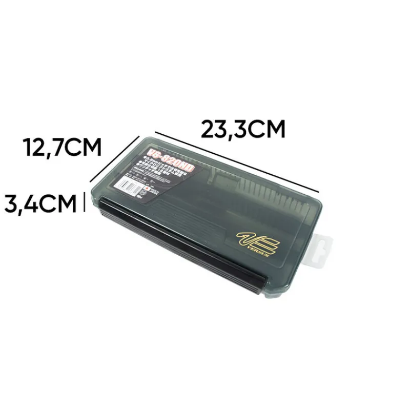 La VS-820ND de Versus est une boite à compartiments de haute qualité qui est un ajout indispensable à toute boîte à pêche. La boite de pêche en plastique est livrée avec 12 séparateurs amovibles en plastique et 2 séparateurs fixes en ligne. Les séparateurs peuvent être placés dans différentes fentes à l’intérieur de la boite afin de créer des compartiments de tailles différentes pour des articles de pêche de toutes tailles. La VS-820ND est également équipée d’un couvercle à charnière avec une fermeture à loquet solide qui maintient le couvercle fermé pendant le transport.