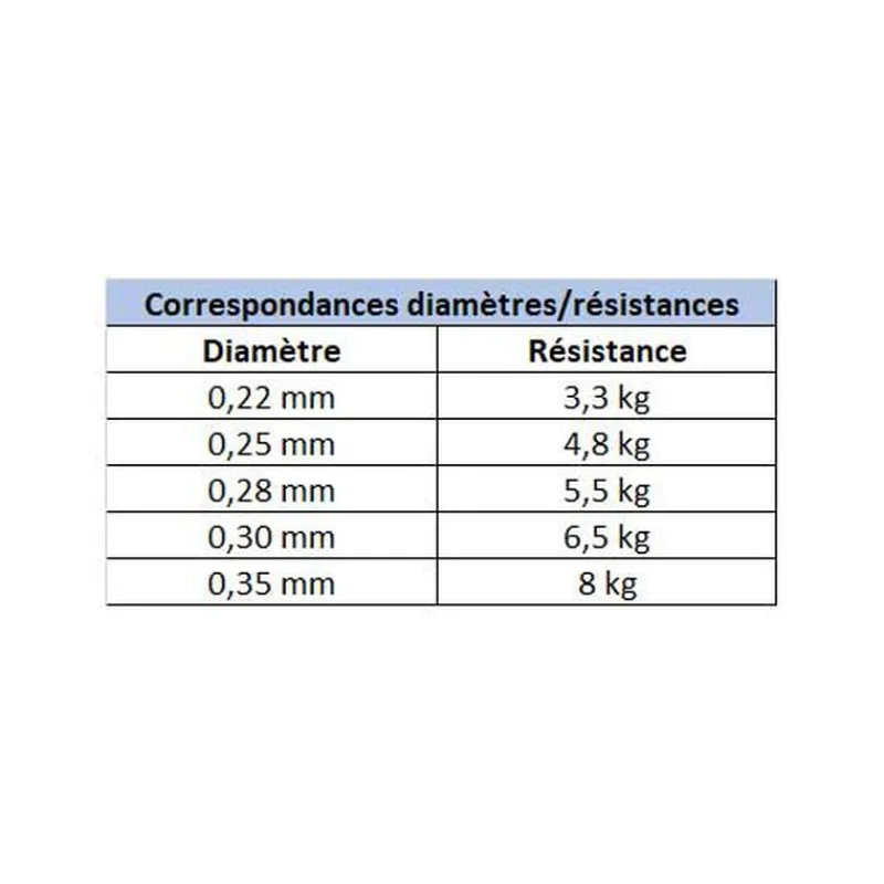 Correspondances diamètres/résistances :