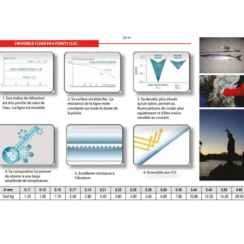 Caractéristiques du fluorocarbone Invisible Clear: