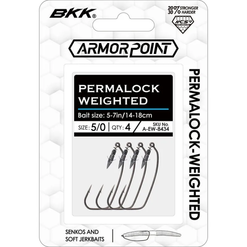 Le Permalock Weighted est l’hameçon texan idéal pour cibler le black bass avec des leurres souples tout en contrôlant parfaitement la profondeur et la nage. À la place de la vis classique, il intègre un lest en tungstène directement moulé sur la hampe, qui s’insère entièrement dans le leurre pour une discrétion parfaite.