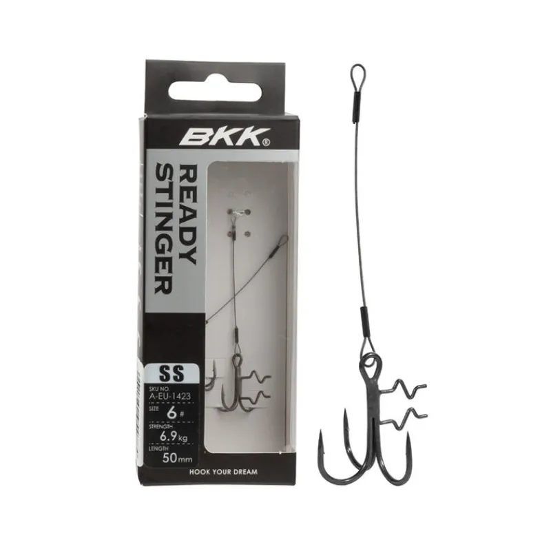 Le BKK Assist Spear Stinger 7×7 Wire est une série de montages stinger conçus pour les pêcheurs au leurres souples les plus exigeants. Réalisé en acier inoxydable japonais 7×7 (49 brins) gris foncé, il combine souplesse, fluidité et absence de mémoire, garantissant une présentation naturelle et durable. Monté sur des triples Assist Spear-21, il intègre deux ergots soudés sur la hampe qui assurent un montage parfaitement droit et sécurisé, sans détériorer le leurre ni altérer son action.