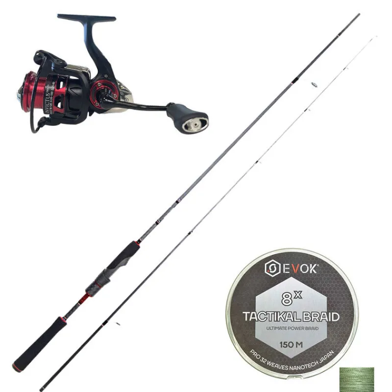Ce Pack Canne Spinning Evok Invictus V2 2.01m, 5-14g + Moulinet Evok Invictus 2500FD + Tresse Evok Tactikal Braid 0.12 mm est un ensemble medium light idéal pour toutes les pêches légères de la perche ou autres petits carnassiers. Très maniable, léger et sensible, cet ensemble permet l’utilisation de leurres souples, poissons-nageurs, leurres métalliques.