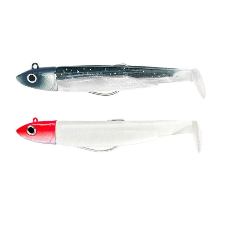 Constitué d’un leurre monté (tête offshore 6g et 3g + hameçon + corps 70mm) + un corps de rechange