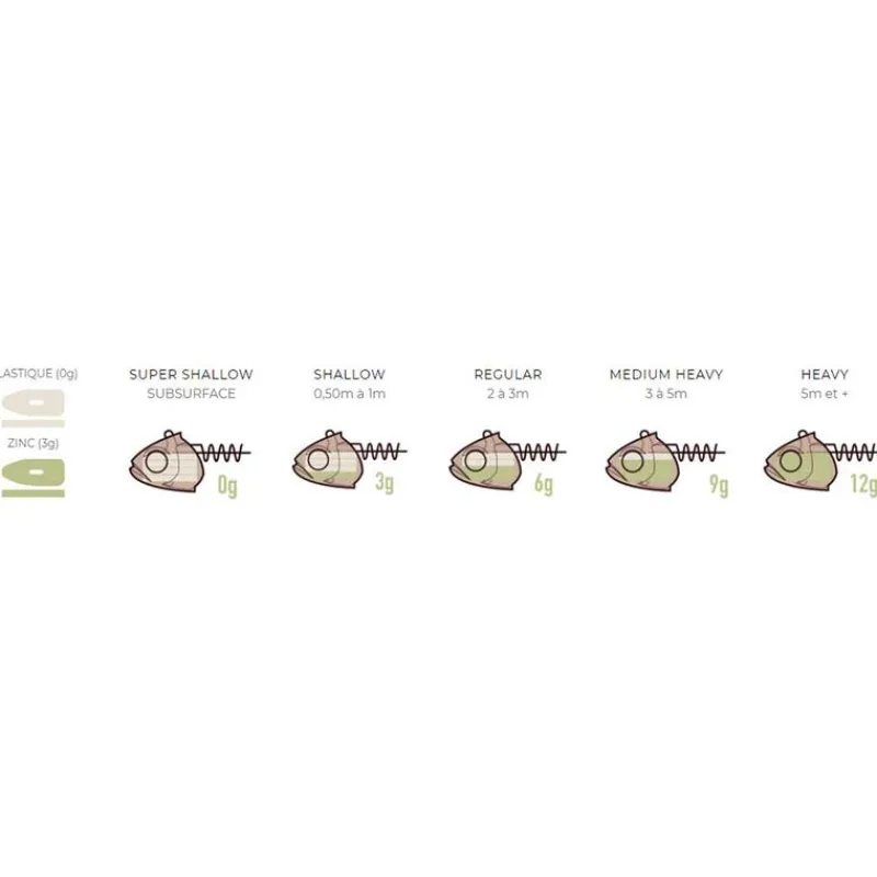 Une tête, plusieurs options: Une tête unique compatible avec plusieurs tailles de corps. Pêchez avec un même leurre dans plusieurs profondeurs d’eau.