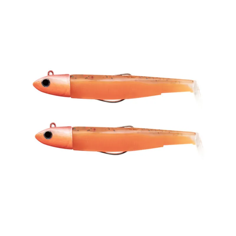 Constitué de deux leurres montés (tête offshore 10g + hameçon + corps 90mm) x2.