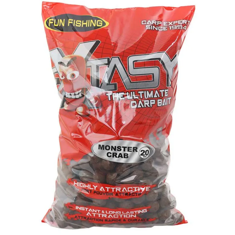 Pour être à la hauteur de cette légende, la formulation se devait d’être ultra-attractive et innovante et c’est le cas ! Nous avons donc axé la composition sur des farines extrêmement appétantes et hautement digestes comme par exemple : farine de poissons Norvik LT, farine de volaille, hydrolysatde foie liquide, protéolysat de poisson, plasma… De couleur sombre, l’EXTASY Monster Crab Original présente une surface lisse due à l’emploi massif de farines carnées. Elle s’avère aussi très performante en terme de diffusion, grâce notamment à l’apport des hydrolysats poudres et liquides.