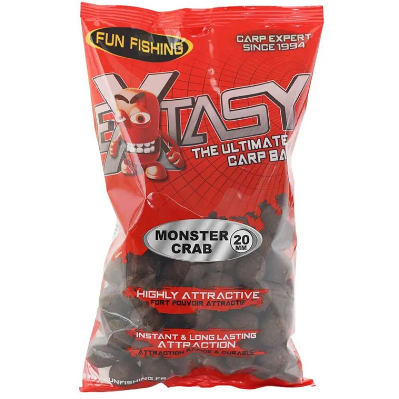 Pour être à la hauteur de cette légende, la formulation se devait d’être ultra-attractive et innovante et c’est le cas ! Nous avons donc axé la composition sur des farines extrêmement appétantes et hautement digestes comme par exemple : farine de poissons Norvik LT, farine de volaille, hydrolysatde foie liquide, protéolysat de poisson, plasma… De couleur sombre, l’EXTASY Monster Crab Original présente une surface lisse due à l’emploi massif de farines carnées. Elle s’avère aussi très performante en terme de diffusion, grâce notamment à l’apport des hydrolysats poudres et liquides.