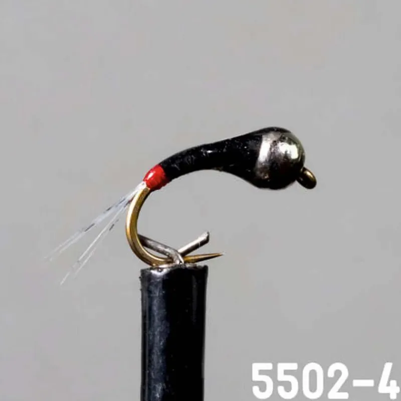 5502-4 : Nymphe courbée légère et classée comme nymphe imitative. Montage perdigone en corps lisse noir avec cerques qui facilite l’immersion. Complémenté d’un tag couleur sang à l’arrière pour apporter un léger signal incitatif à l’imitation.