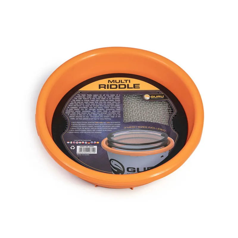 Le Guru Multi Riddle a été conçu pour s’adapter parfaitement aux seaux Guru et Mainline Match de 18 L, mais il convient également à d’autres seaux de cette taille.