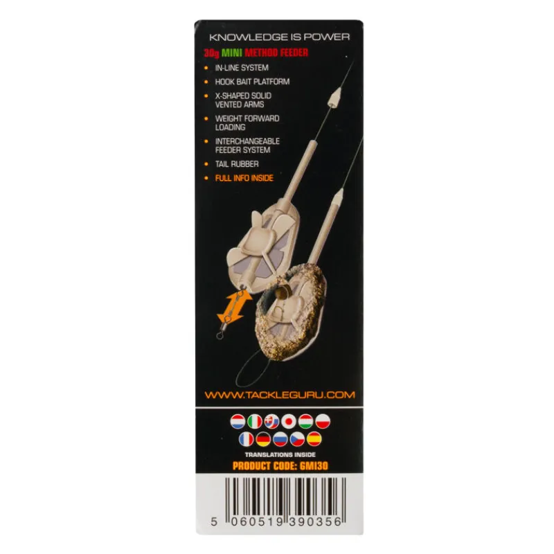 Une avancée révolutionnaire en matière de design amène les Method Feeders GURU à la pointe de l’innovation. Le method feeder GURU IN LINE MINI METHOD FEEDER dispose des dernières innovations de GURU. Il vous offre tous les avantages d’un method feeder in-line sans le système élastique. Le système unique de plateforme « Hook Bait Platform » permet un positionnement optimal de votre esche dans votre amorce Method. Il suffit de placer sur celle-ci votre montage favori avant de former votre boule.
