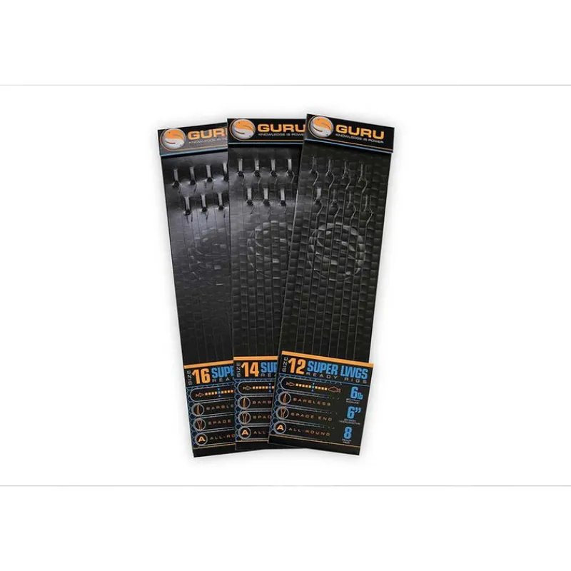 Chaque paquet de montages Guru Ready Rigs contient un guide des tailles d’hameçons, permettant aux pêcheurs d’identifier rapidement la taille idéale pour l’espèce ciblée. Ce guide facilite le choix du montage, notamment pour les pêcheurs débutants, en fonction de l’espèce désirée. Fini les approximations : vous pêchez avec le matériel adapté.