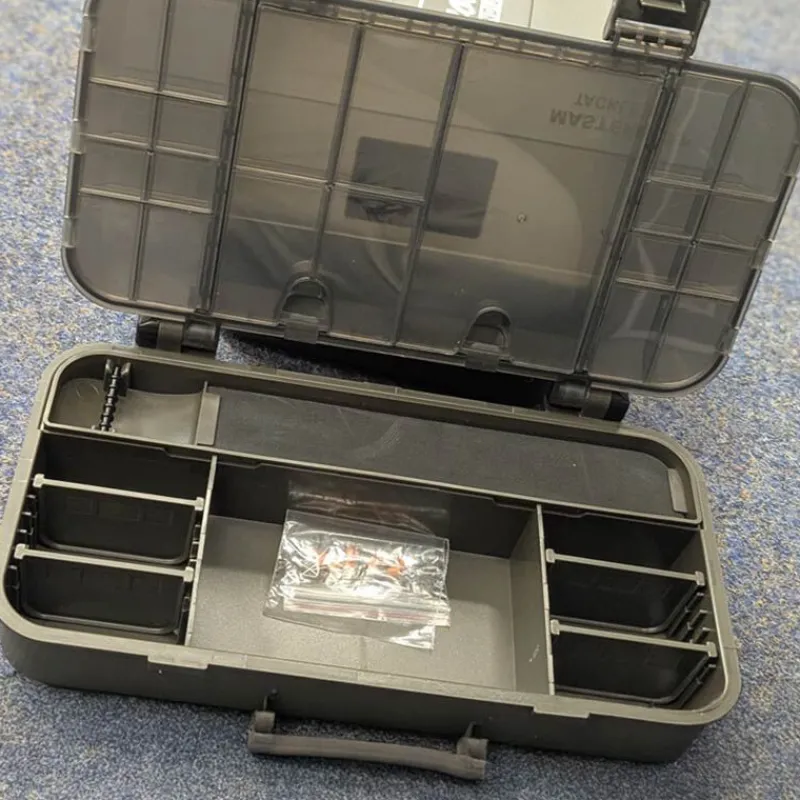 Cette boîte dispose de multiples compartiments intérieurs, dont certains modulables, pour un rangement précis de vos bas de ligne, hameçons, plombs, émerillons et autres petits accessoires. Le couvercle semi-transparent permet une identification rapide du contenu sans avoir à l’ouvrir, et les fermetures sécurisées garantissent un transport sans risque.