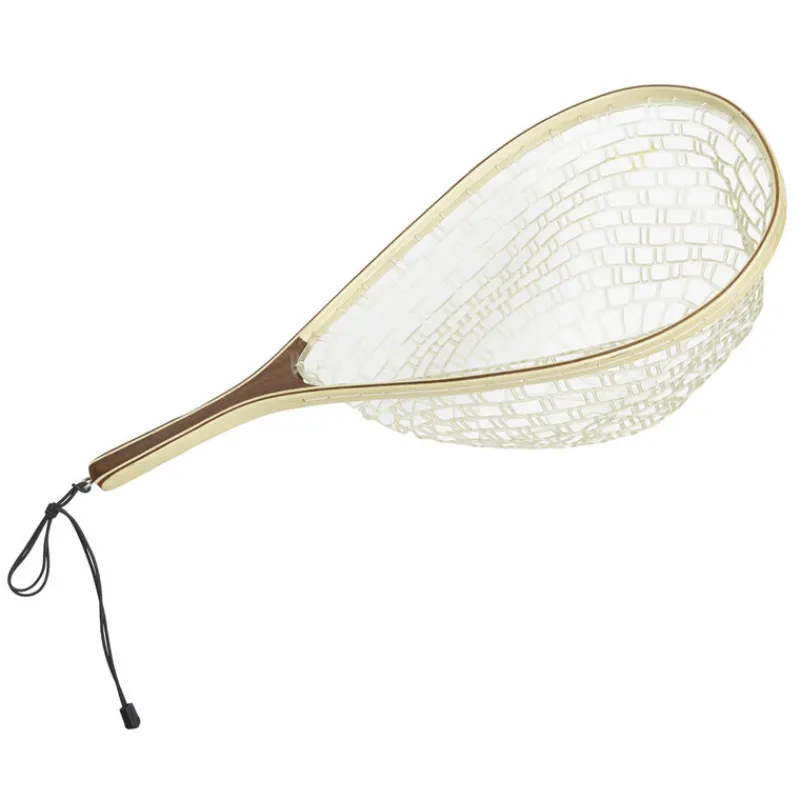 Raquette JMC en bois équipée d’un filet plastique silicone rubber qui permet d’éviter de blesser le poisson.