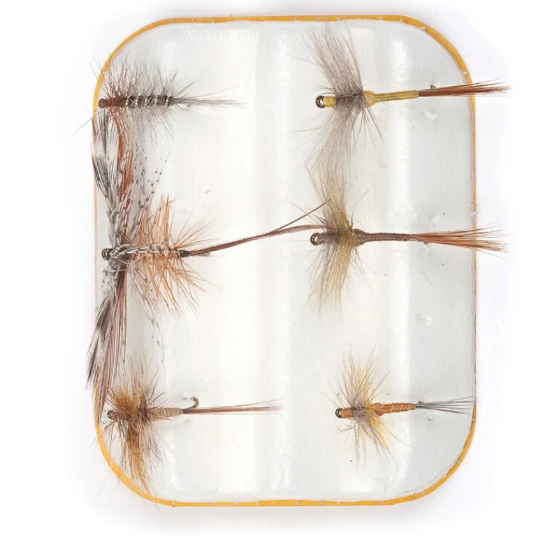 Ce kit de 6 mouches sèches permet de pêcher dès l’ouverture jusqu’à la fermeture en choisissant les modèles les plus ressemblants aux insectes présents au bord de l’eau au cours de la saison.