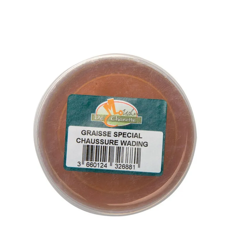 Passée régulièrement sur les cuirs et les coutures, cette graisse préserve les chaussures de wading.