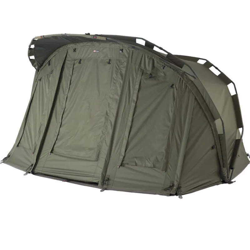La partie arrière du biwy jrc extreme tx est équipée de 2 larges volets qui contribuent à faire circuler l’air à l’intérieur de l’abri lors des chaudes journées estivales.