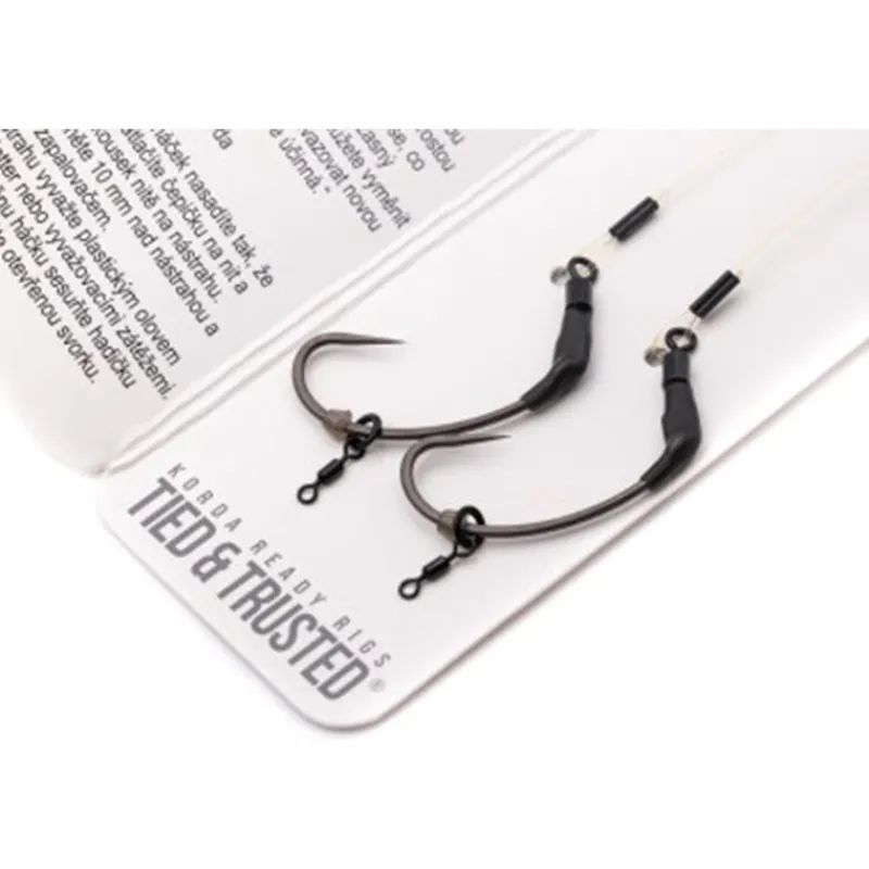 L’hameçon est attaché à un Spinner Swivel serti pour une connexion solide et fiable. À l’autre extrémité, une boucle sertie permet une fixation rapide sur n’importe quel système de changement rapide Korda. Ce montage est réutilisable : il suffit de remplacer l’hameçon sans refaire tout le montage.
