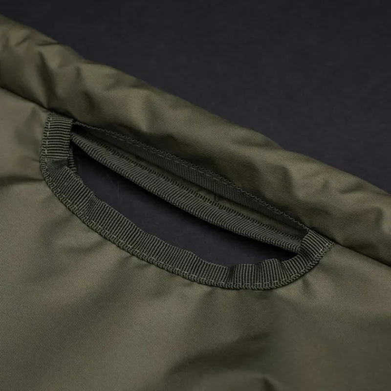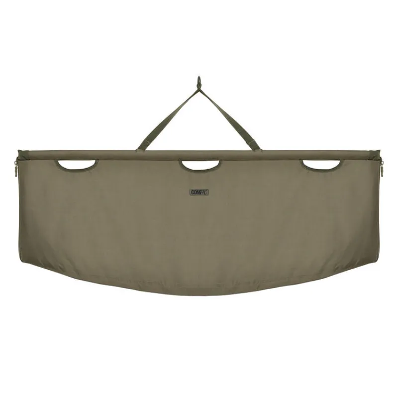 Le fond du weigh sling est équipé de plusieurs trous de drainage, permettant à l’eau de s’écouler rapidement pendant la pesée. Il est aussi doté de barres en mousse flottantes pour faciliter le transfert du filet de réception dans le sling, ce qui rend le levage des carpes plus sûr. Bien que les barres flottent à la surface de l’eau, ce sling est uniquement destiné à la pesée et ne doit pas être utilisé pour retenir les poissons sur une période prolongée.