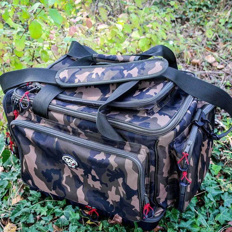 Son design camouflage discret et élégant s’intègre parfaitement dans l’environnement naturel, tandis que ses fermetures renforcées et ses sangles robustes assurent une durabilité à toute épreuve. Idéal pour ranger vos boîtes, accessoires, appâts, et tout le nécessaire de bivouac.