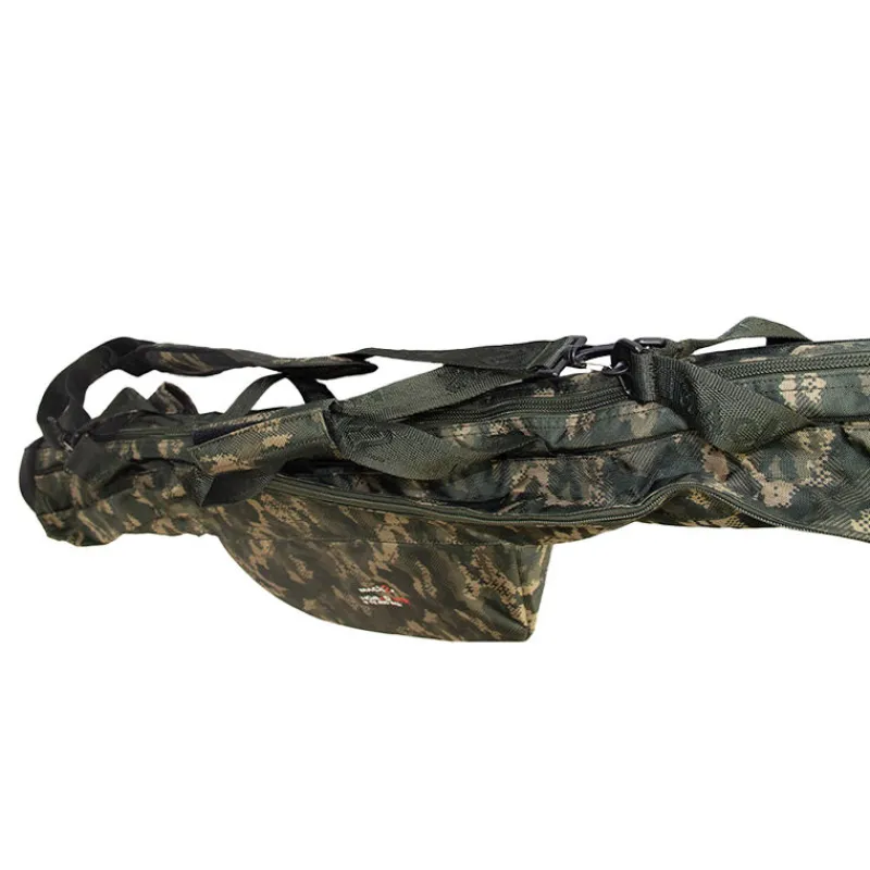 Une poche latérale zippée permet de ranger une épuisette, des piques ou autres accessoires. À l’intérieur, deux compartiments bien distincts accueillent vos cannes séparément, évitant ainsi les chocs et les frottements pendant le transport.