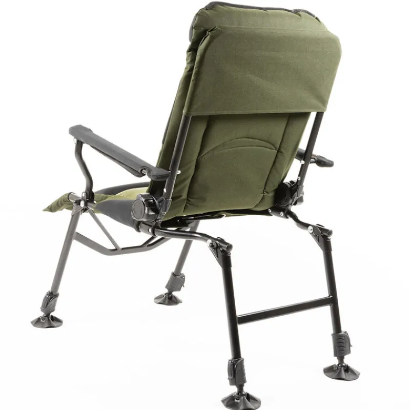 Muni de 4 pieds réglables individuellement, vous pourrez alors adapter ce levelchair à chaque type de berge. De plus chaque pied est équipé de coupelles anti-boue évitant que votre levelchair ne s’enfonce lors d’utilisation dans des sols meubles.