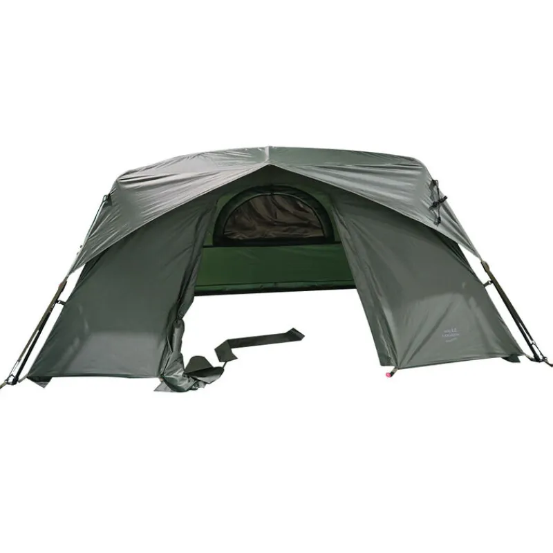 Un petite avancé au dessus de la porte vous garantira aucun risque d’avoir le bedchair mouillé et cette avancé créé aussi une deuxième couche sur le haut du biwy vous apportant une plus grande protection contre l’humidité et la condensation.