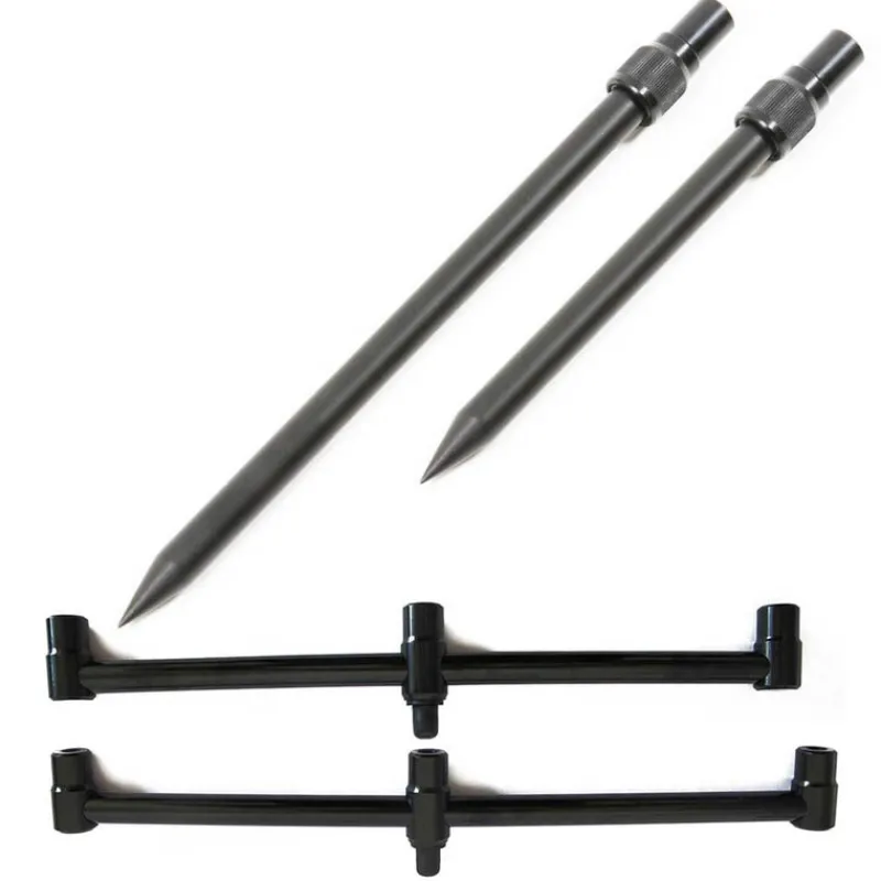 Un pack de 2 buzzbar 3 cannes et 2 piques pour vous permettre de positionner sur la berge vos trois cannes en direction du spot souhaitez pour identifier au plus vite de l’activité sur vos montages. Un piques plus grande que l’autre afin de vous permettre de relever ou baisser le scion en fonction de votre besoin (fort vent ou végétation sur la berge)
