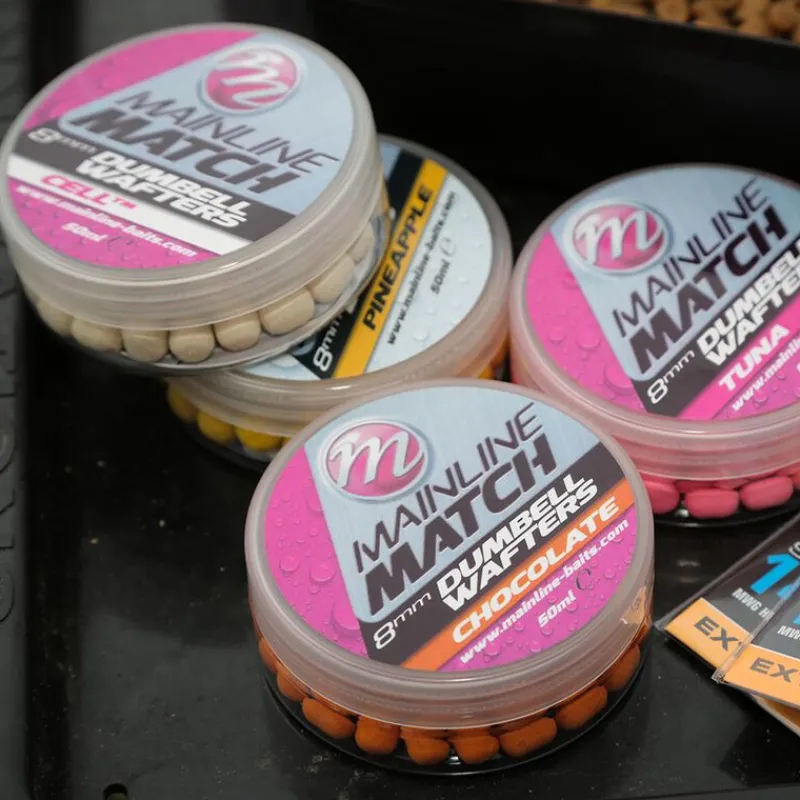 Conditionnés en pots de 50 mL, les dumbells MAINLINE MATCH DUMBELL WAFTERS sont disponibles dans 4 couleurs et parfums différents :