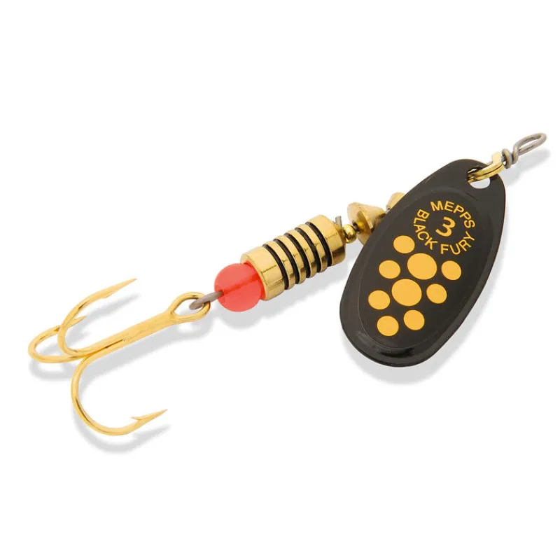 La Black Fury offre toute la qualité de Mepps. L’utilisation de laiton de première qualité avec des composantes usinées permet à ces leurres de maintenir leur équilibre et de fonctionner efficacement pendant des années. Les cuillères sont en laiton, l’axe du leurre est en acier inoxydable suédois et les hameçons sont de qualité supérieure.