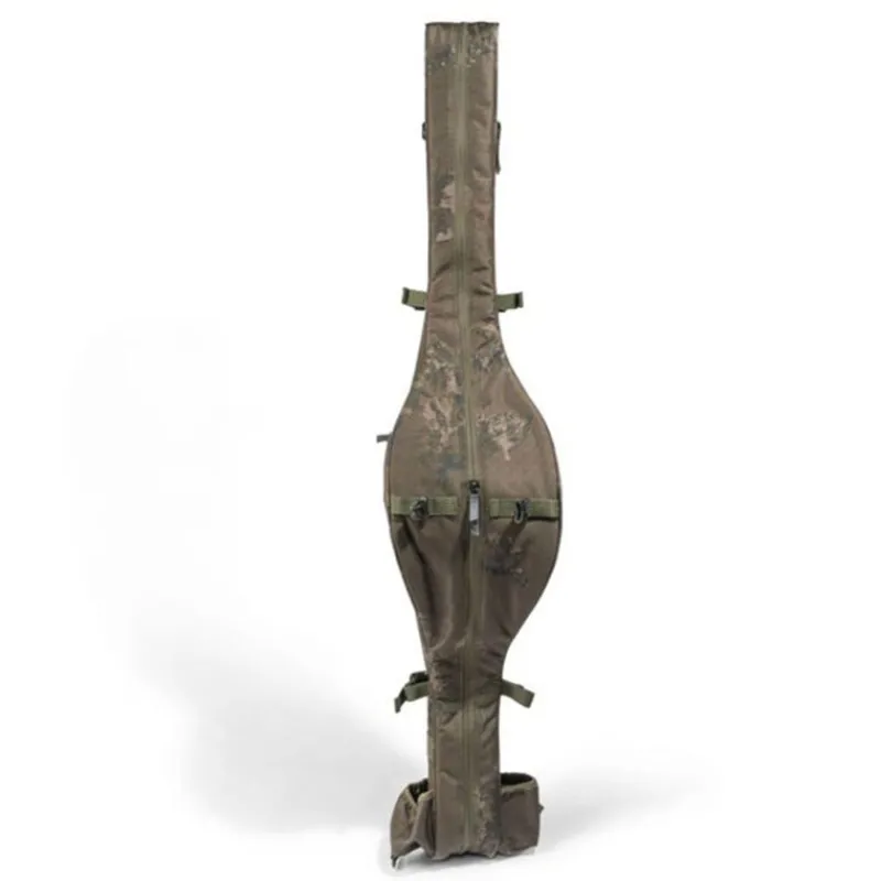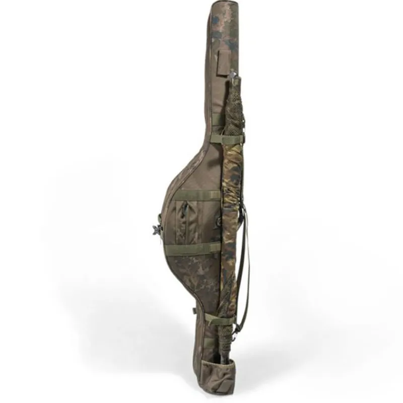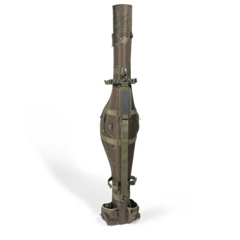 La pochette extérieure à la base du fourreau et les sangles de compression permettent de transporter des sacs de conservation, des mâts tempête, des lances bouillettes ou même des abris compacts à l’extérieur du fourreau.
