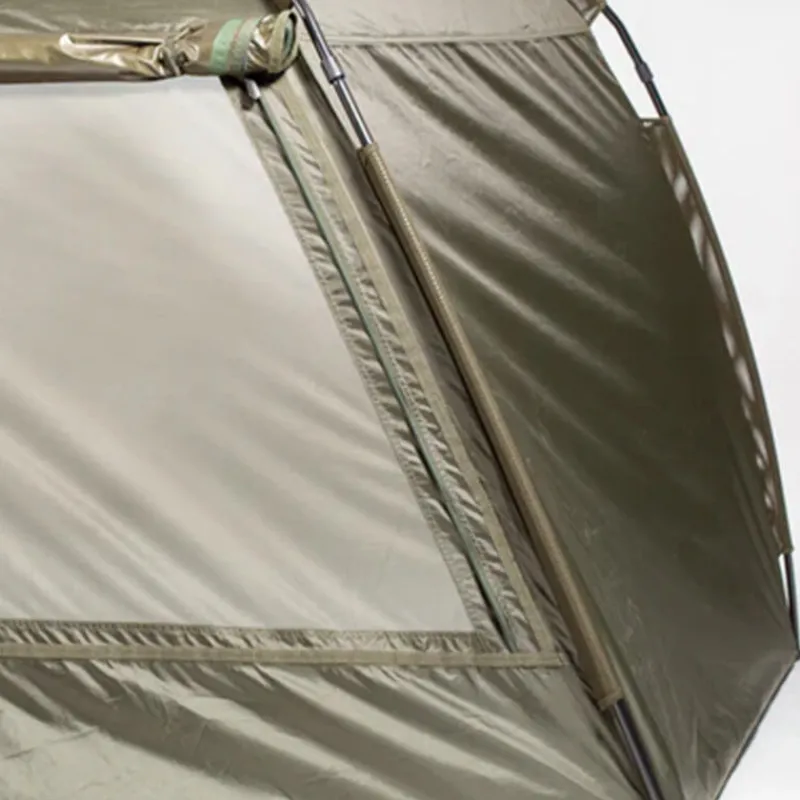 Pensé pour limiter la condensation et améliorer la ventilation, il dispose de deux grands panneaux arrière en mozzi mesh et d’un vapour shield amovible. Sa structure repose sur un centre boss compact et extrêmement robuste, complété par une sangle de tension et des détails pratiques comme un crochet interne pour suspendre une lampe ou une centrale. Livré avec les piquets Nash T pegs, il est prêt à affronter toutes les conditions.