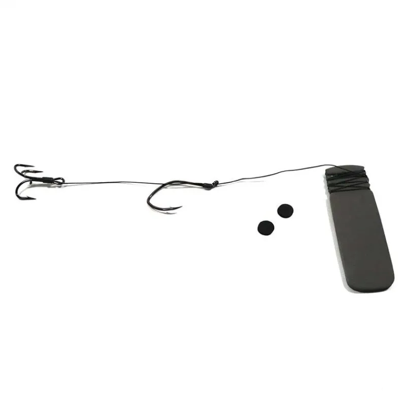 Ce bas de ligne d’un mètre de long est équipé d’un simple en 8/0 et d’une triple en 6/0 avec 15cm d’écart entre les deux