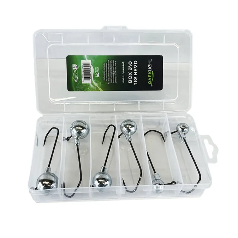 Boite contenant un lot de 6 têtes plombées silure en taille 9/0 allant de 20g, 40g à 60g.