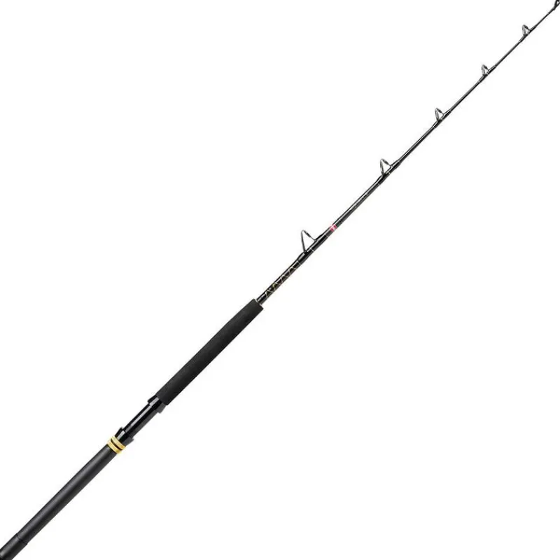 La canne Penn Squall II est une gamme conçue pour couvrir tous les styles de pêche à la dérive et à la traîne en bateau. La canne est construite avec un blank en verre tubulaire d’une seule pièce et une pointe solide pour prévenir les cassures. Le robuste guide SeaGuide en acier inoxydable à 3 pattes avec oxyde d’aluminium est extrêmement résistant, assurant une gestion parfaite de la ligne lors du combat, même avec le plus gros thon rouge. Pour un confort accru, la canne Squall II Boat est dotée d’une poignée avant en EVA en forme de triangle, réduisant la rotation de la canne sous pression. Le siège de moulinet en aluminium usiné offreune prise sûre sur le moulinet, tandis que le support de canne assure une connexion solide pendant le combat.