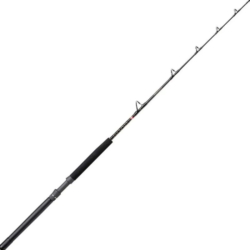 La gamme de cannes PENN Squall II a été conçue pour couvrir tous les styles de pêche à la dérive et à la traîne à partir du bateau, s’accordant parfaitement avec les moulinets PENN Squall II. Les cannes sont construites avec un blank en verre tubulaire d’une seule pièce et un scion solide pour éviter la casse. Les anneaux SeaGuide à 3 branches en acier inoxydable avec oxyde d’aluminium sont extrêmement résistants et vous garantissent une gestion parfaite de la ligne pendant le combat, même avec le plus gros thon rouge. Pour plus de confort, les cannes Squall II Boat sont équipées d’une poignée avant en EVA de forme triangulaire qui réduit la rotation de la canne sous pression. Les porte-moulinet en graphite ultra-résistant (sur les modèles 20-50lb) et en aluminium usiné (autres modèles) assurent une bonne prise en main du moulinet, tandis que le cardan offre une solidité accrue et une connexion sûre pendant le combat. Le talon lisse empêche le talon de la canne de s’abîmer dans le porte-canne, tandis que les modèles à talon courbé ont un talon courbé court en aluminium, ce qui les rend également très appropriés pour combattre un gros poisson en position debout