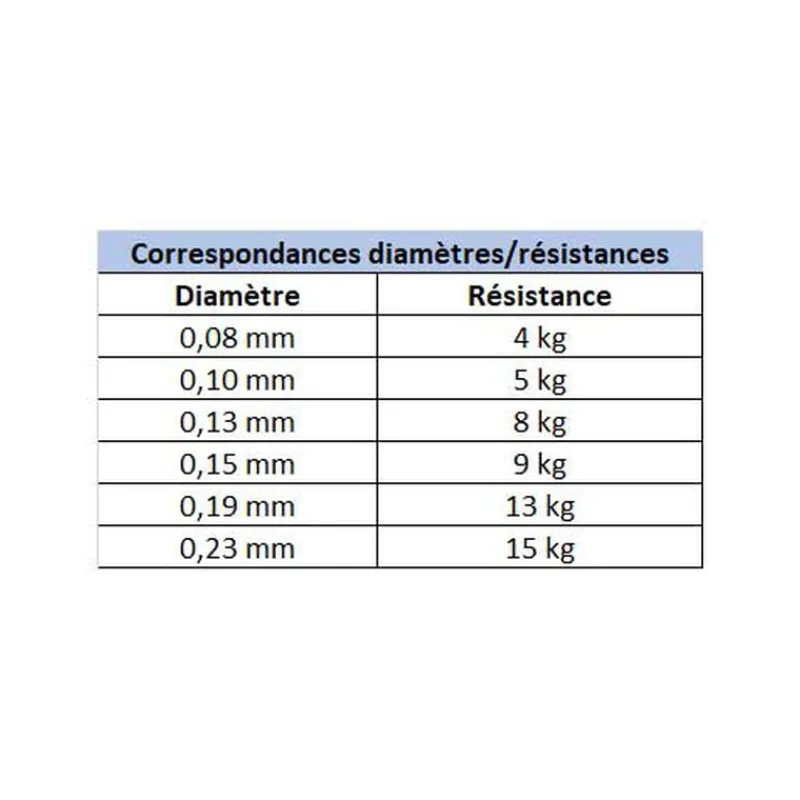 Correspondances diamètres/résistances :