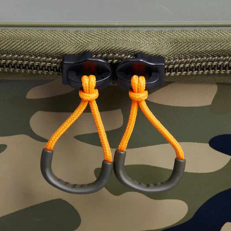 Ils sont également modulables avec tous les sacs d’accessoires de la gamme, ce qui vous offre de nombreuses options pour organiser votre kit exactement comme vous le souhaitez – plus besoin de fouiller dans vos bagages pour trouver vos affaires. Le sac de transport est doté d’une poche frontale zippée qui convient à la plupart des boîtes de pêche et d’équipement de taille moyenne, ainsi que d’une poche zippée supplémentaire sur le couvercle – un endroit idéal pour ranger les alarmes de morsure et les barres d’alarme.