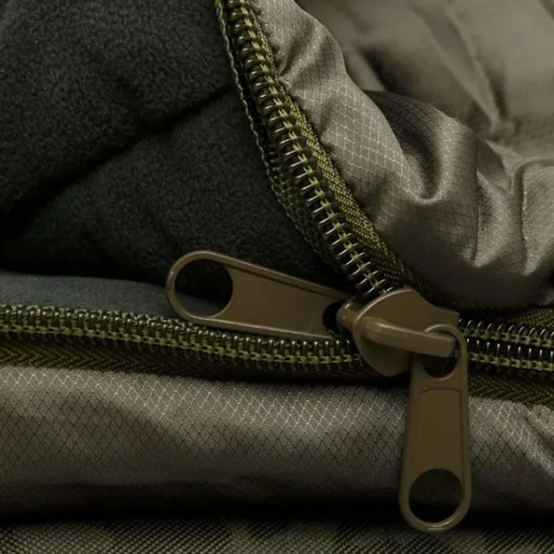 Son garnissage en fibres creuses est réparti de manière stratégique afin d’assurer une isolation optimale, même en conditions fraîches. L’intérieur en polyester doux est parfaitement adapté aux carpistes qui dorment habillés, tandis que des zones en micro-polaire viennent renforcer le confort autour de la tête et du menton.