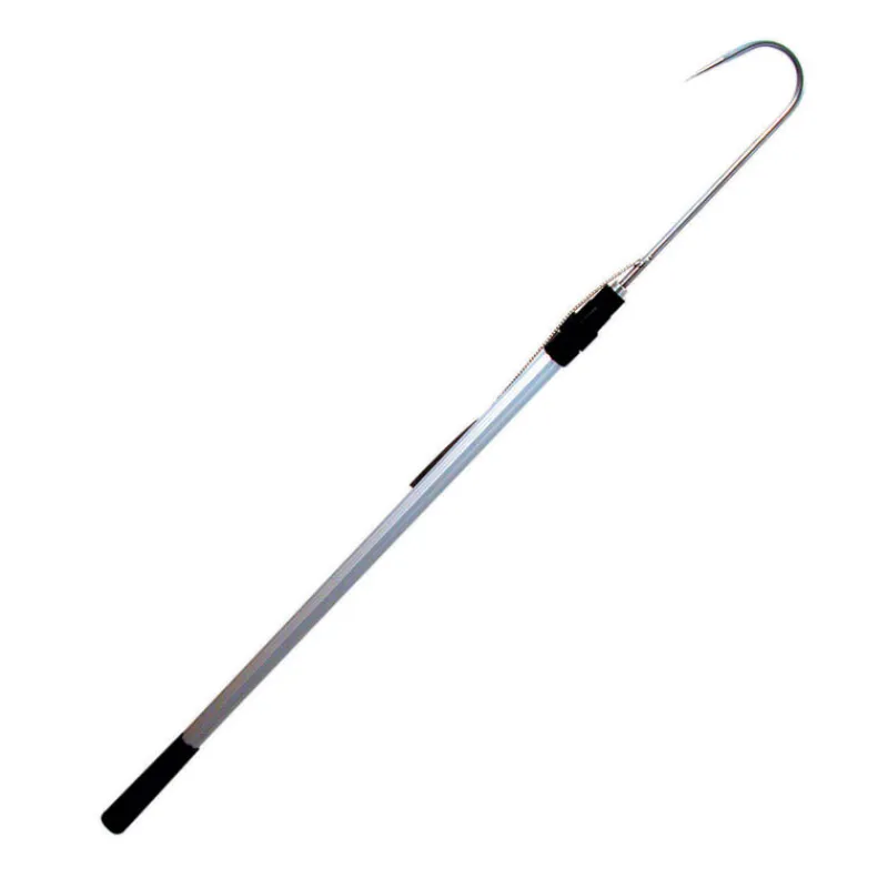 Cette gaffe de pêche possède un crochet en acier inoxydable et une poignée en PVC pour une prise en main ferme.