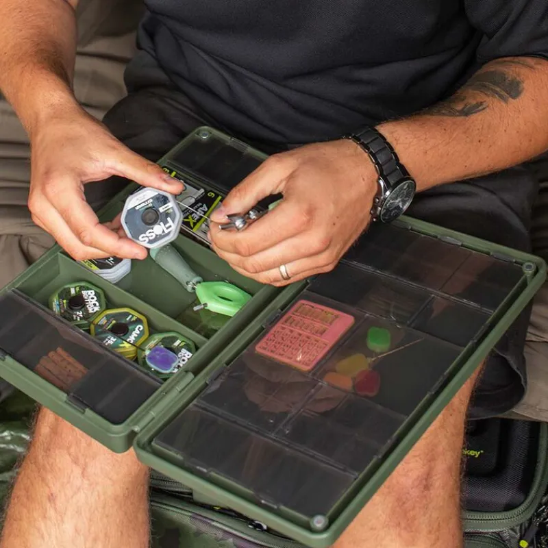 Qu’il s’agisse d’émerillons, de manchons anti-emmêlement, d’hameçons, de bas de ligne, de PVA, de ciseaux ou d’autres outils de montage, vous pouvez être sûr qu’il y a de la place pour eux dans l’Armory Lite.