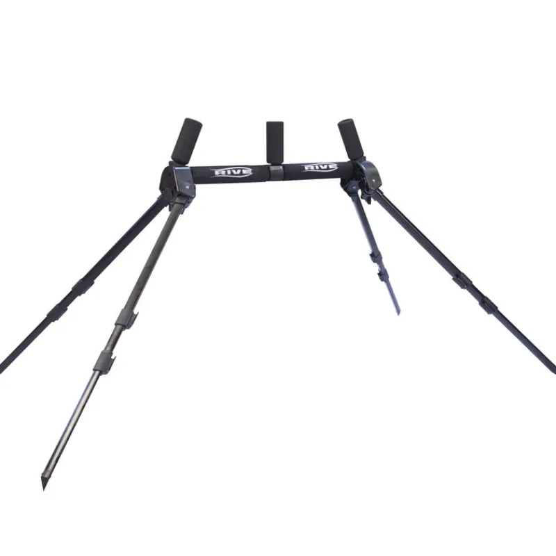 Conçu pour être compact, il est équipé de 4 pieds picots pour une parfaite tenue au sol, idéal quand il ne faut pas déplier les pieds comme par exemple avec un talus derrière sois. Les mini-rouleaux latéraux renforcées sont repliables pour un transport facile tout en offrant un maintien latéral efficace de la canne.