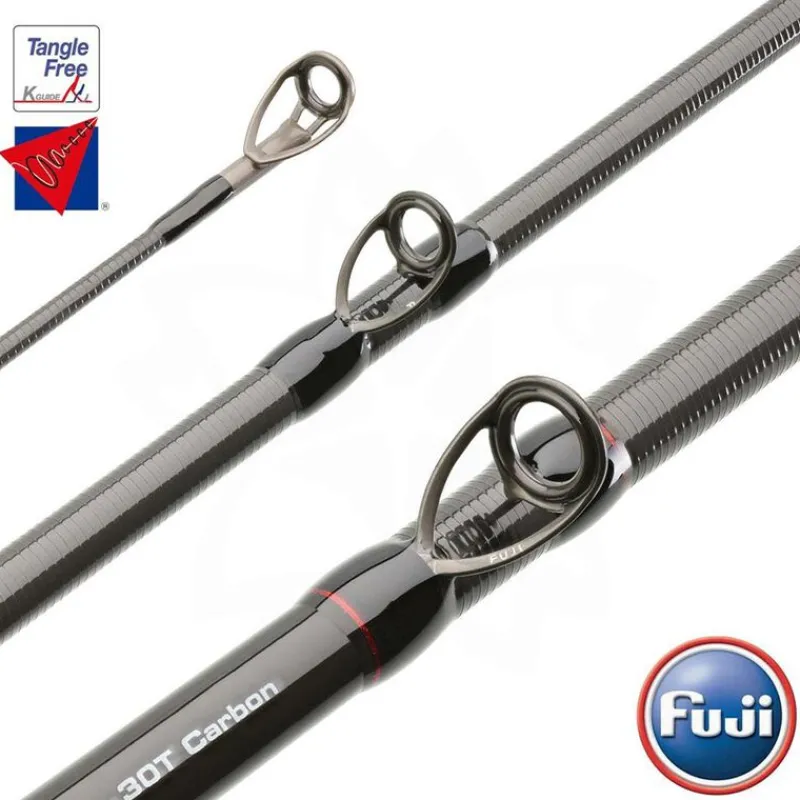 Les anneaux « Concept O-Ring » de Fuji sont composés de bagues en Oxyde d’aluminium. La résistance de cette céramique aux frottements et à l’échauffement est compatible avec tout type de tresse et de monofilament pour mener à bien un combat avec un gros poisson. La version « slim », utilisée sur une partie des rampes d’anneaux, est 12% plus légère qu’un anneaux classique « O-Ring ».