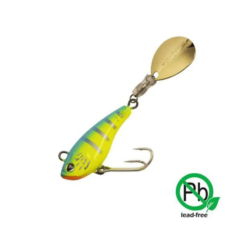 Le Tailspin Zn Sakura est un leurre compact et dense, équipé en queue d’une palette « colorado » reliée par un émerillon à billes. Une petite gaine silicone est enfilée sur l’émerillon de manière à éviter le bouclage dans l’hameçon lors des lancer ou des phases de coulée abruptes, en action de pêche. Le Tailspin Zn est constitué d’un alliage de Zinc (Zn) et ne contient pas de plomb. Il est d’une extrême polyvalence car il peut être récupéré linéairement comme une cuiller tournante, en variant les vitesses de nage et les profondeurs. Il excelle également en jigging (dandine verticale) au travers des bancs de perches ou de sandres par exemple.