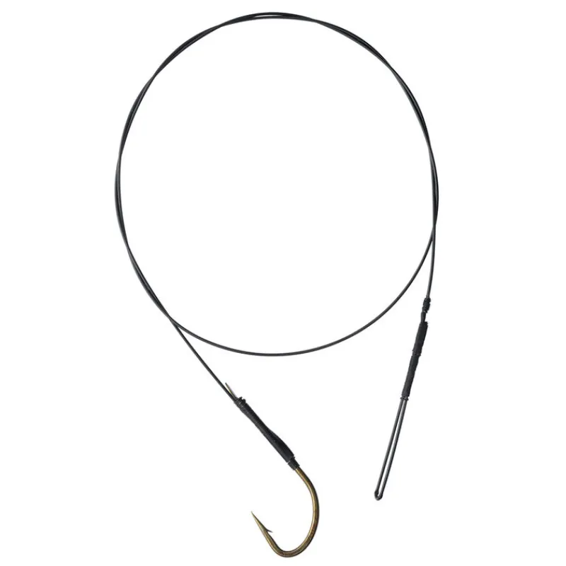 Avançon en acier 7 brins de 60 cm avec boucle et hameçon simple, idéal pour la pêche du brochet.