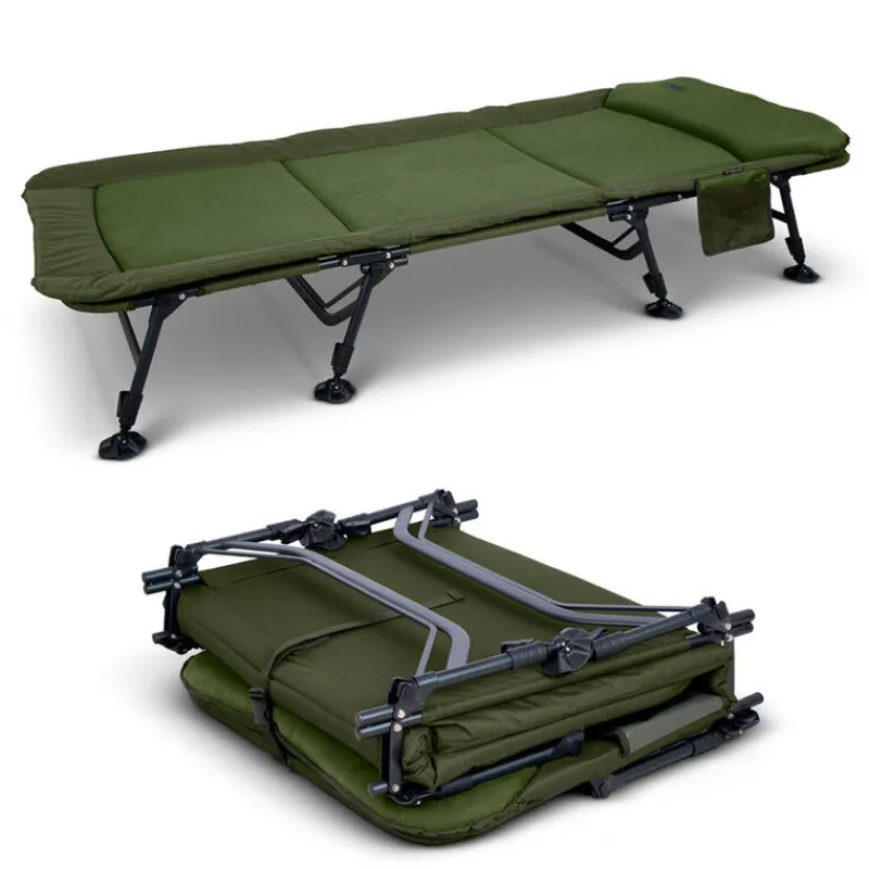 Le système de pliage à double support surdimensionné permet de laisser votre sac de couchage sur le lit lorsqu’il est plié pour le transport. De plus, deux poches latérales pratiques permettent de ranger votre téléphone ou vos clés. Avec des composants en acier inoxydable pour une durabilité exceptionnelle, le Bank-Tek Levelbed Wide est conçu pour durer et assurer un confort optimal lors de vos longues sessions de pêche.