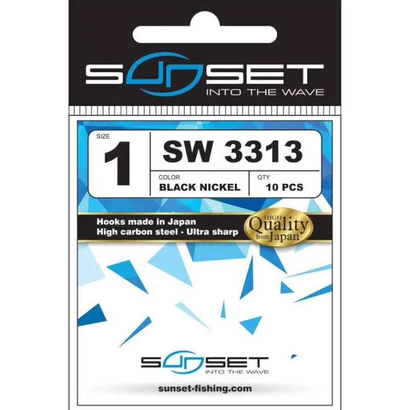 Les Sunset Sunhooks Sw 3313BN sont des hameçons forts de fer, à œillet, renversés et à hampes courtes. Munis d’un traitement en black nickel pour une résistance optimale à la corrosion. Les hameçons Sunhooks Sw sont fabriqués au Japon, en acier haut de gamme et à haute teneur en carbone pour une résistance maximale et un piquant hors norme durable dans le temps. Avec cet hameçon vous diminuerai vos pertes de poissons !