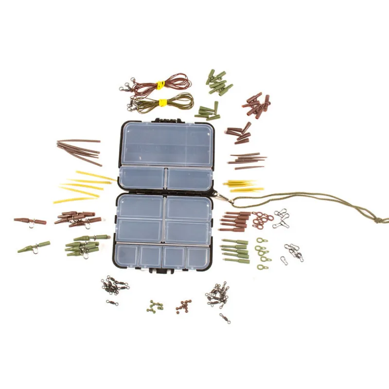 Boite contenant 106 accessoires pour confectionner des montages avec clip plomb ou des montages coulissants.