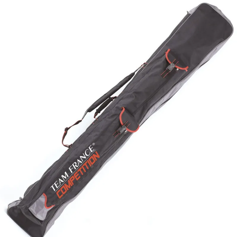 Ce fourreau pour cannes au coup se compose d’un grand compartiment central dans lequel vous pourrez ranger vos différents tubes (jusqu’à 12). Ceux -ci peuvent être attachés afin de garantir une parfaite tenue à l’intérieur du fourreau lors du transport. Il est également équipé de 2 poches frontales : une plus petite principalement étudiée pour recevoir vos piques, et une autre plus grande qui convient parfaitement pour le rangement de votre parapluie ou de votre manche d’épuisette.